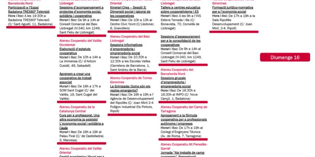 - Ateneu Cooperatiu Alt Penedès-Garraf: Jornada “Als treballs de camp cooperem”. Presentació pública model cooperatiu per a jornalers – Dijous 13