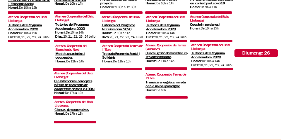 A continuació podeu veure l’agenda prevista del 20 al 26 de juliol: