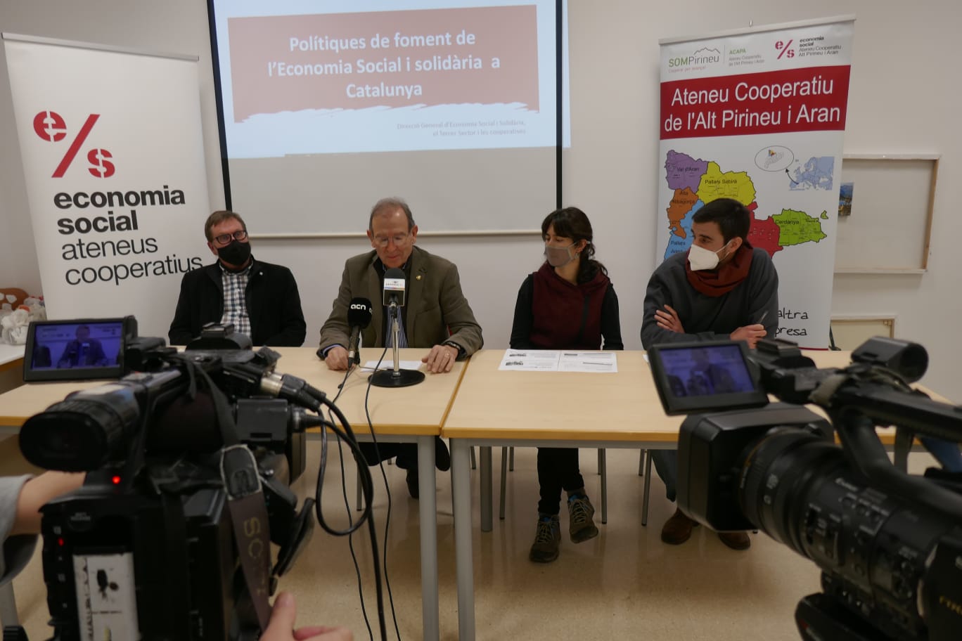Les dades han estat presentades aquest dimecres 23 de març a Tremp per Josep Vidal, director general d’Economia Social i Solidària, el Tercer Sector i les Cooperatives de la Generalitat. Ho ha fet en el transcurs d’una visita a projectes cooperatius de l’Alt Pirineu. En la presentació l’han acompanyat Josep Maria Mullol, president del Consell Comarcal del Pallars Jussà, i Júlia Leigh i Joan Font, de la cooperativa d’arquitectes Coopd’Era, beneficiària d’un dels Projectes Singulars impulsats des del Programa d’Economia Social de la Generalitat a l’Alt Pirineu i Aran.