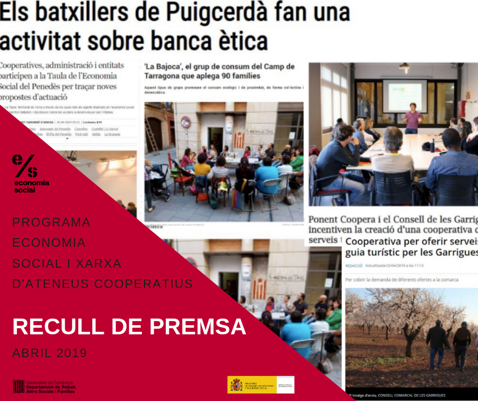 - El Programa d’Economia Social i la Xarxa d’Ateneus Cooperatius ha recollit aquest mes d’abril més de vuitanta impactes a mitjans,