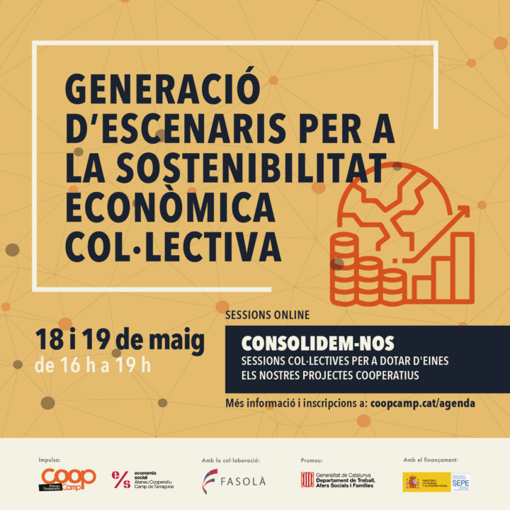 CONSOLIDEM-NOS! Sessions col·lectives per dotar d’eines els nostres projectes cooperatius Generació d’escenaris per a la sostenibilitat econòmica col·lectiva – part II 19 de maig 2021 / de 16 a 19…