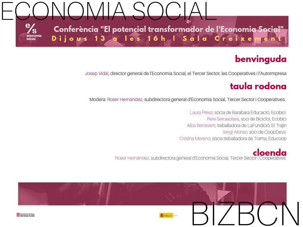 16-17h | Sala Tendències: Conferència “El potencial transformador de l’Economia Social” (Us hi podeu inscriure des d’aquí.)